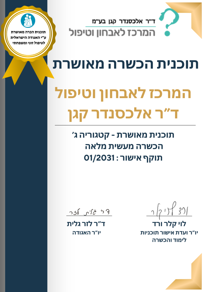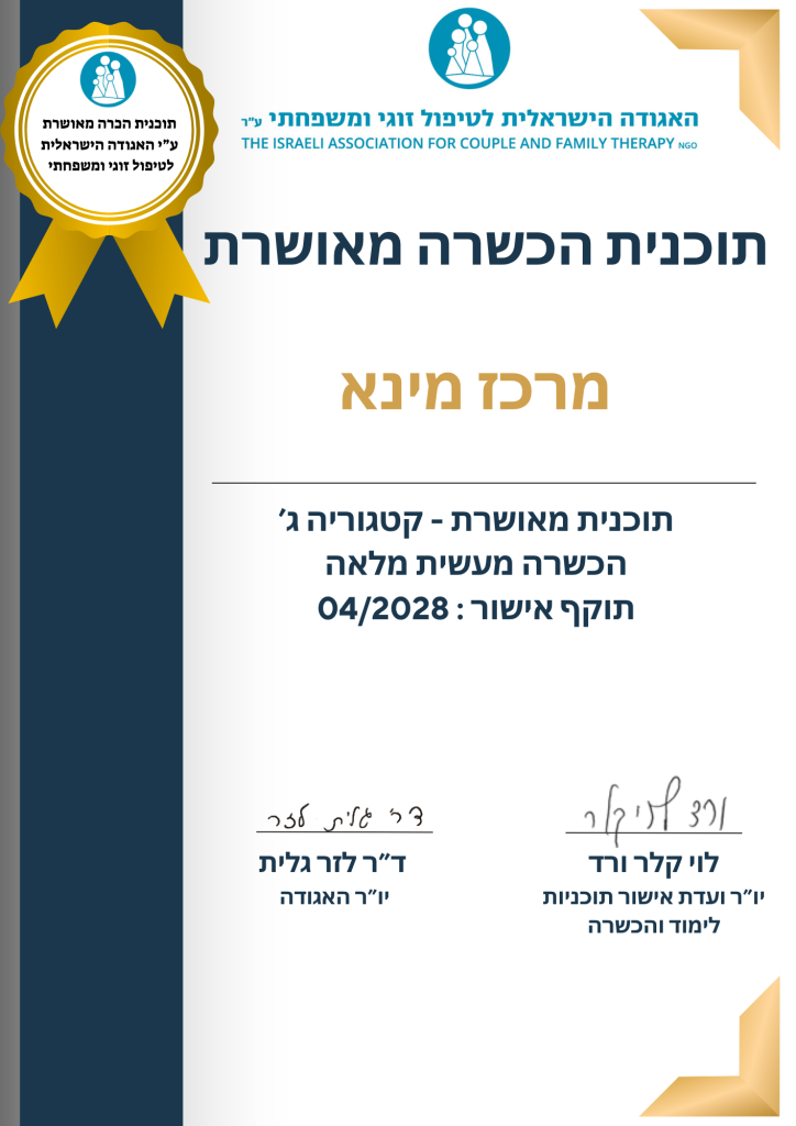 שימו לב וחפשו את התעודה שלנו, במקום ההכשרה בו אתם לומדים!